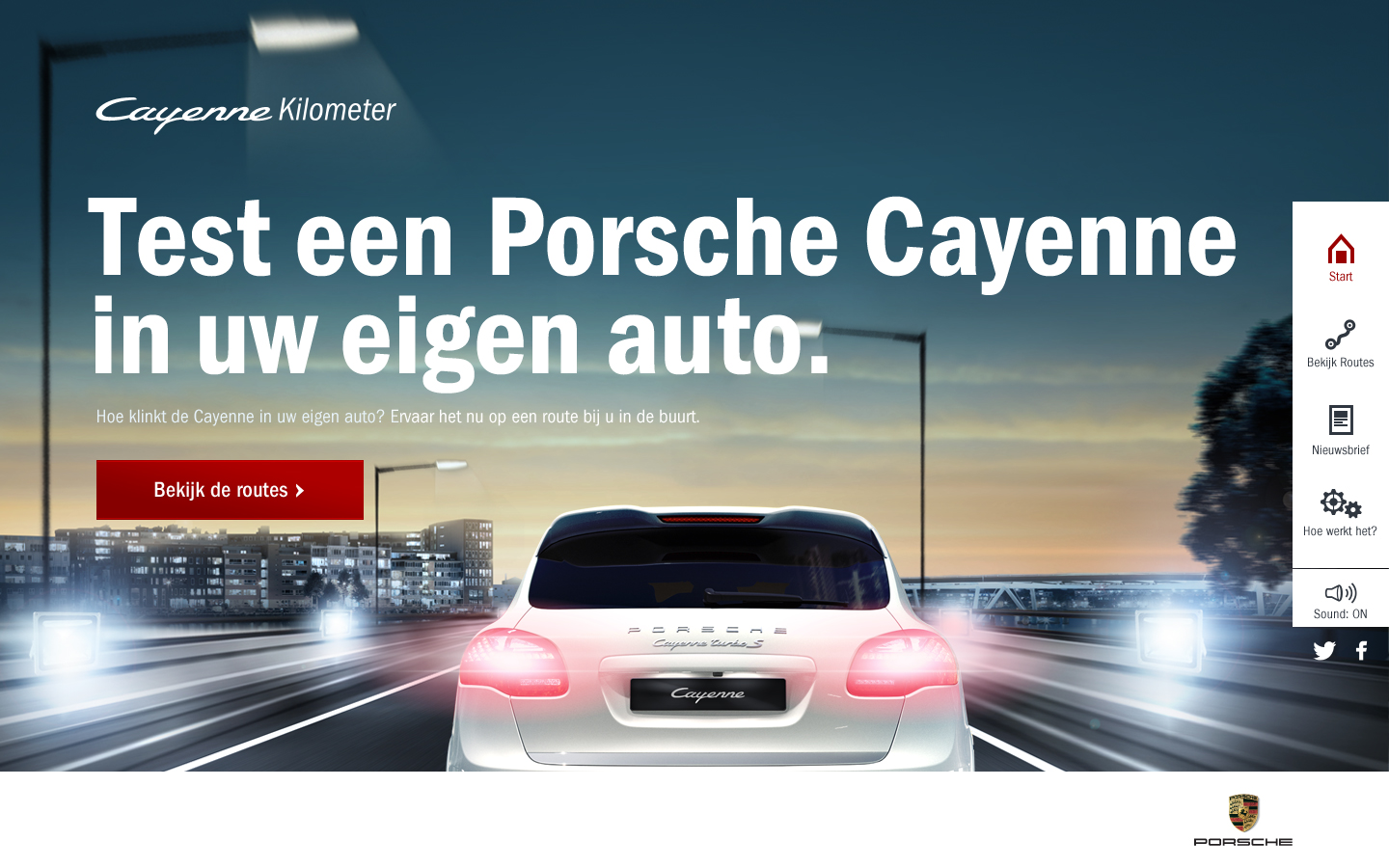 Door af te stemmen op de speciale frequentie van Cayenne FM, krijgen automobilisten één kilometer lang het indringende, sportieve geluid van een Cayenne Turbo S te horen. De kilometer is op zeven trajecten uitgezet. Grote billboards zetten passerende automobilisten aan om de Cayenne te proberen. Aan het einde van de kilometer worden bestuurders via ‘Cayenne FM’ geattendeerd op het dichtstbijzijnde Porsche Centrum voor een nadere kennismaking met de SUV.
