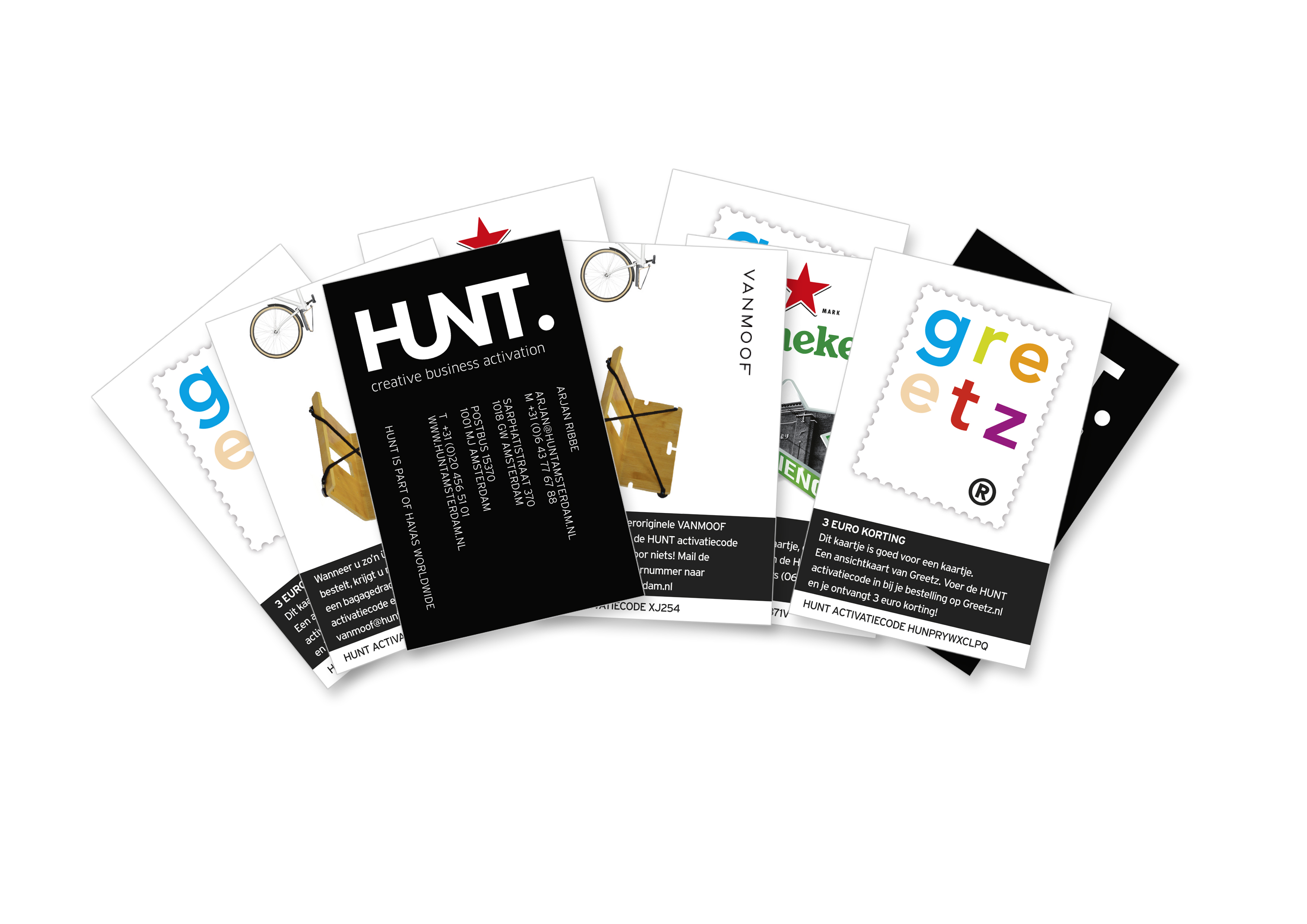 Ieder visitekaartje heeft een activatiecode. Hiermee kan de ontvanger eenvoudig gebruik maken van de korting of een cadeau claimen. Verder kan HUNT natuurlijk zien of de relatie iets met het cadeautje gedaan heeft. Tot slot bereikt de adverteerder op sympathieke wijze een belangrijke groep beïnvloeders of prospects: marketeers, mediamensen en creatieven.