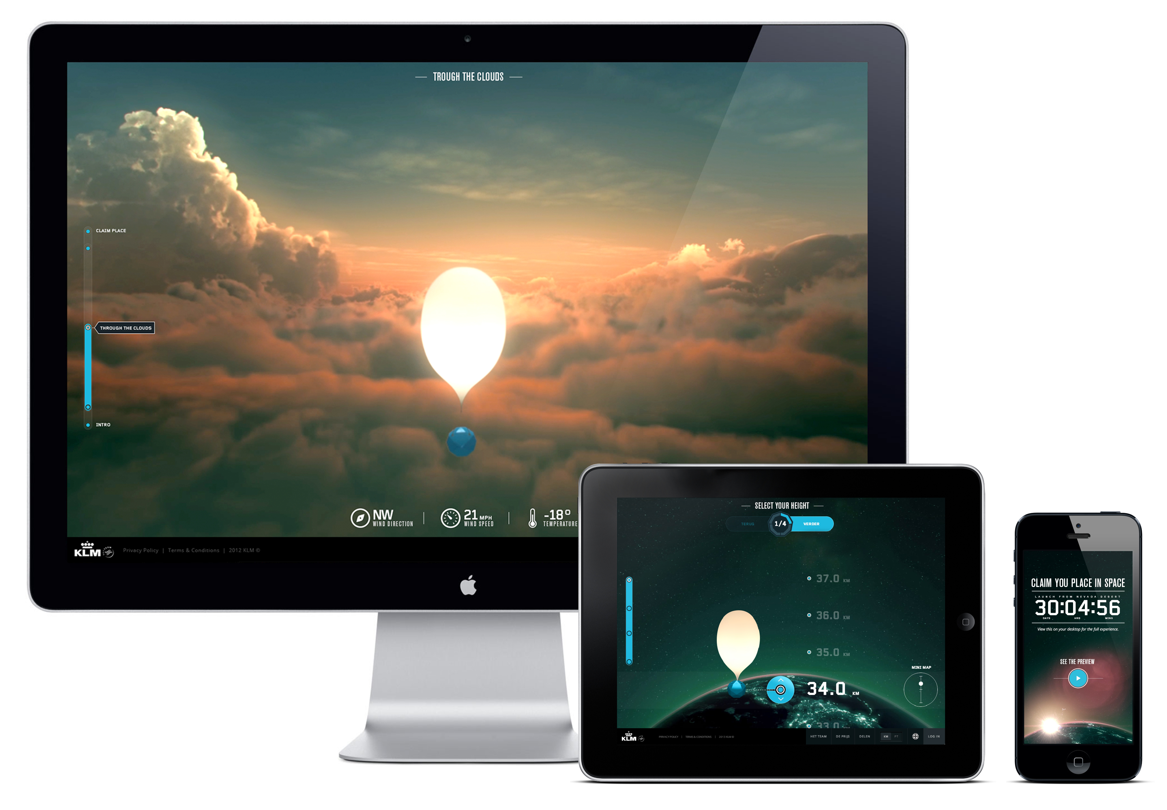 Op 22 april zal een speciale luchtballon opstijgen vanuit de Nevada-woestijn in de VS. In die ballon zitten camera’s en een GPS-tracker, zodat belangstellenden de vlucht live kunnen aanschouwen vanaf klm.com/space. Wanneer de ballon in de buurt komt van de atmosfeer, dan zal het gevaarte eerst uitzetten en snel daarna uit elkaar knallen. Op de site kan men voorspellen waar de ballon precies ontploft. Diegene die het dichtste bij het juiste antwoord zit, wint een reis naar de ruimte.