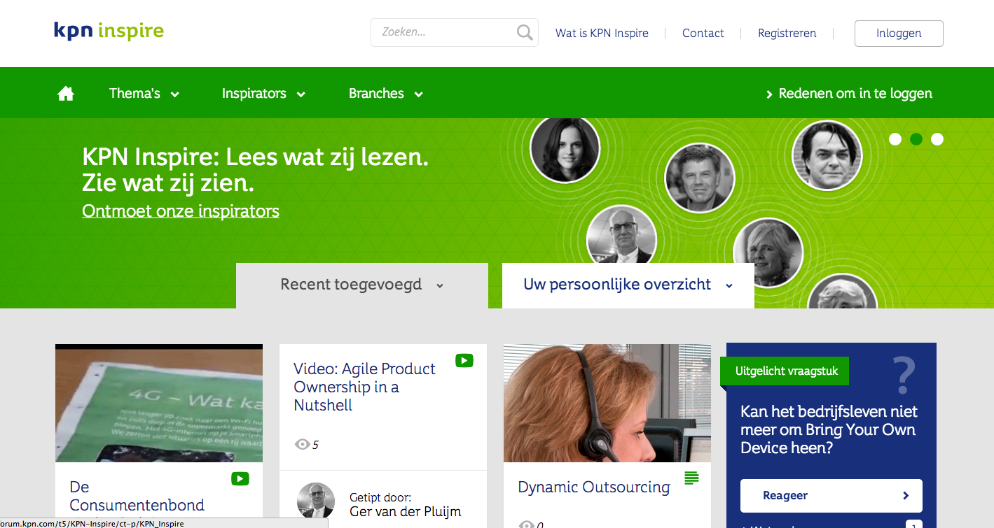 Gisteren is het online platform KPN Inspire onthuld om KPN zakelijk klanten meer te betrekken. Het platform is gelanceerd met het doel om hen te inspireren, samen te brengen en de mogelijkheid te geven om informatie te delen.